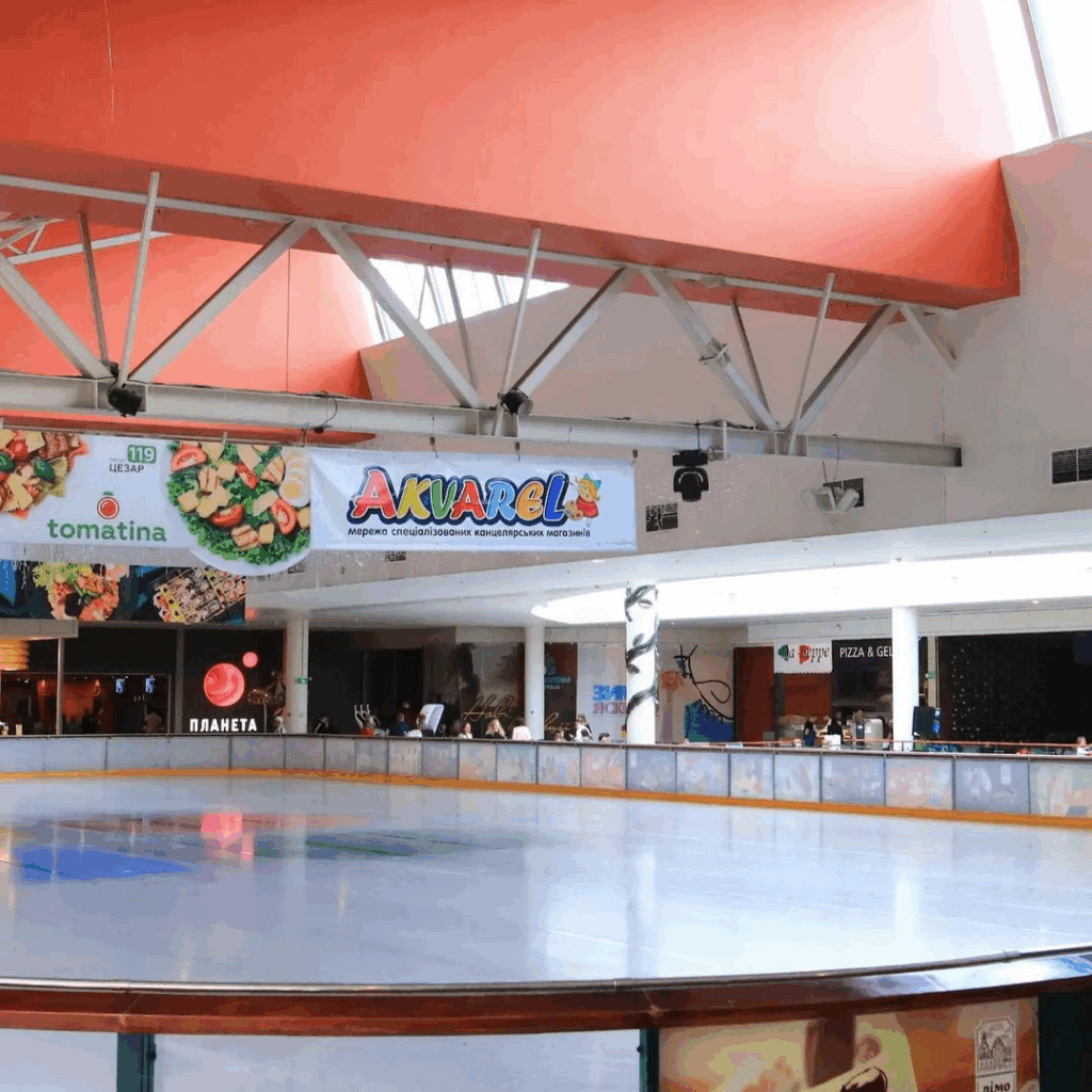 Це всесезонна льодова арена, яка працює цілий рік. Площа катка — також 800 кв. м, що гарантує комфортний простір для катання. Узимку атмосфера особливо чарівна, а сам каток часто пропонує акції та приємні знижки.