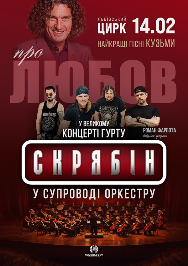- Гурт Скрябін у супроводі оркестру — програма «Про Любов» у Львівському цирку, де пролунають легендарні хіти Андрія Кузьменка.