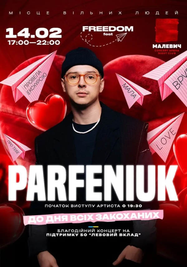 - Parfeniuk — яскравий виступ сучасного хітмейкера для драйвового святкування у Malevich Concert Arena.