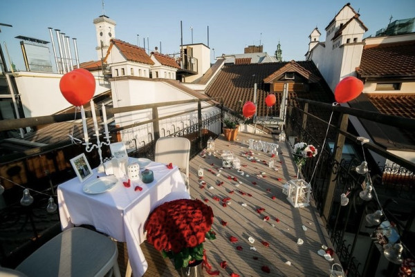 Ресторан розташований у самому серці історичного Львова та відкриває захопливий краєвид на Ратушу й старі дахи міста. У вечірній час, коли вмикається м’яке освітлення і місто огортає особлива тиша, простір стає максимально романтичним. Тут легко організувати камерне освідчення з мінімальним декором або ж доповнити момент квітами, свічками й живою музикою.