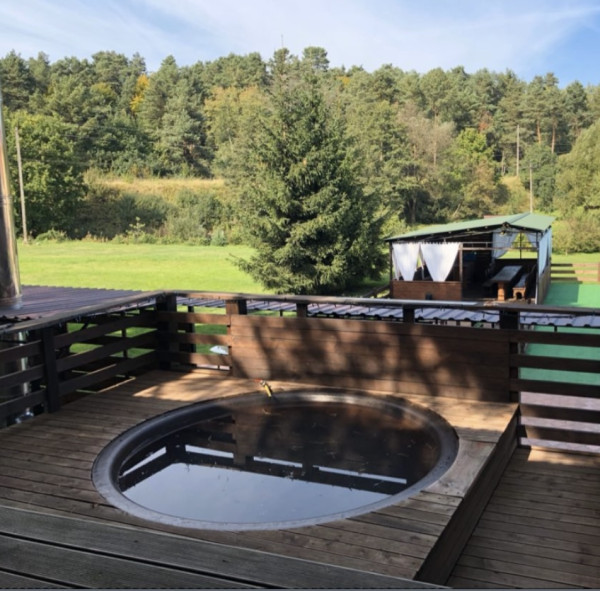 - Особливості: тихе місце всього за 15 км за Львовом. Приватна тераса, гарячий чан із чистою джерельною водою поруч з озером та лісом. Можлива оренда будиночка та альтанки.