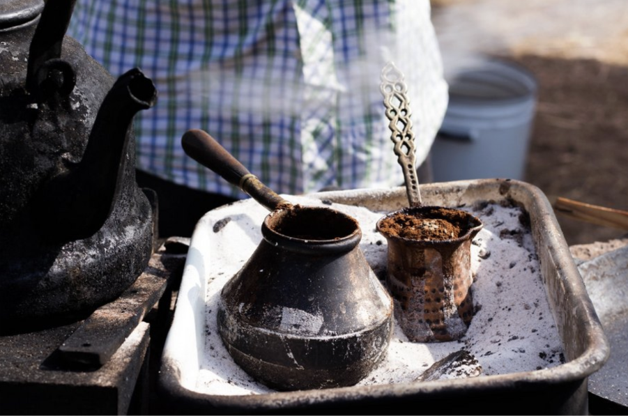 “Кава на піску” — це спосіб, коли джезву або мідний посуд занурюють у дуже нагрітий пісок (іноді з сіллю), і підігрів відбувається рівномірно з усіх боків, включно з дна. Такий підхід дозволяє отримати більш насичений смак, глибший аромат і м’якшу текстуру напою.