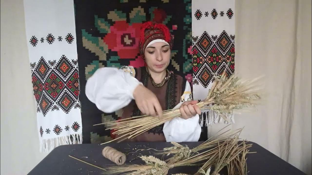 - Підготовка матеріалів: зберіть сухі колоски (жито, пшениця, овес – 12 або 34 пучки), а також сухі трави (м’ята, чебрець) для аромату.