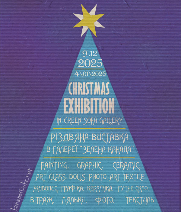 Напередодні та в час Різдва галерея «Зелена Канапа» вже 19-й раз відкриває двері для Традиційної Різдвяної виставки. Тут переплітаються радість свята і тривога воєнного часу: хтось святкує у колі рідних, а хтось вимушено далеко від дому. Більше ніж 40 українських художників представляють свої роботи, які фіксують переживання суспільства – від світлої надії до болю розлуки. Це можливість побачити, як мистецтво відгукується на нашу спільну реальність.